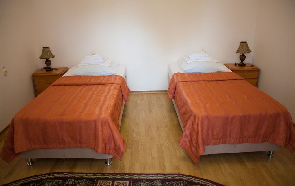 В номере: вешалка, зеркало, кресло, кровати односпальные /одна двуспальная кровать, прикроватные тумбочки, стол, столик журнальный, шкаф, телевизор, телефон, холодильник, чайный набор посуды, электрочайник