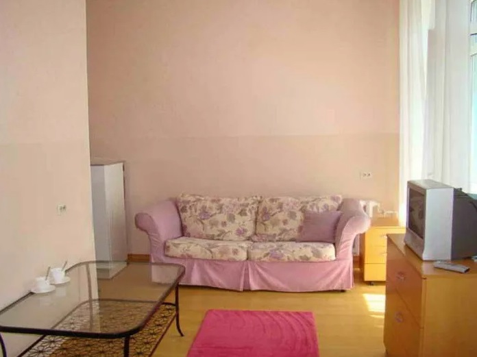 В номере: кровать двуспальная, прикроватные тумбочки, стол, стулья, шкаф, диван, телевизор, холодильник, чайный набор посуды