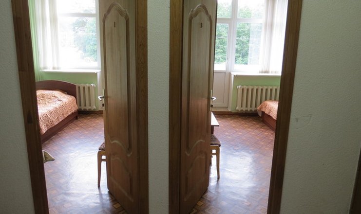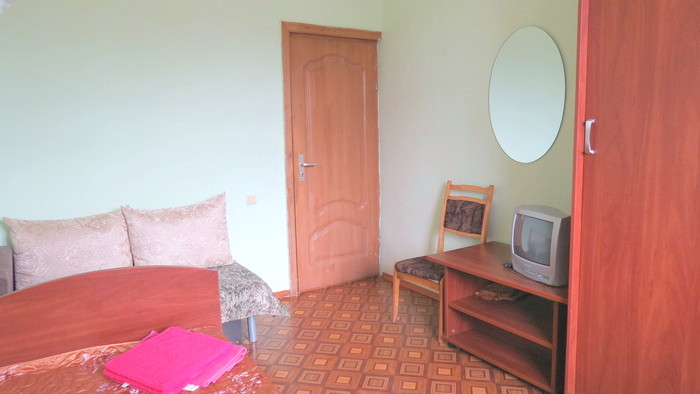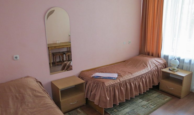 В номере: вешалка, зеркало, кровати односпальные, прикроватные тумбочки, тумба, шкаф, раскладушка на доп. место